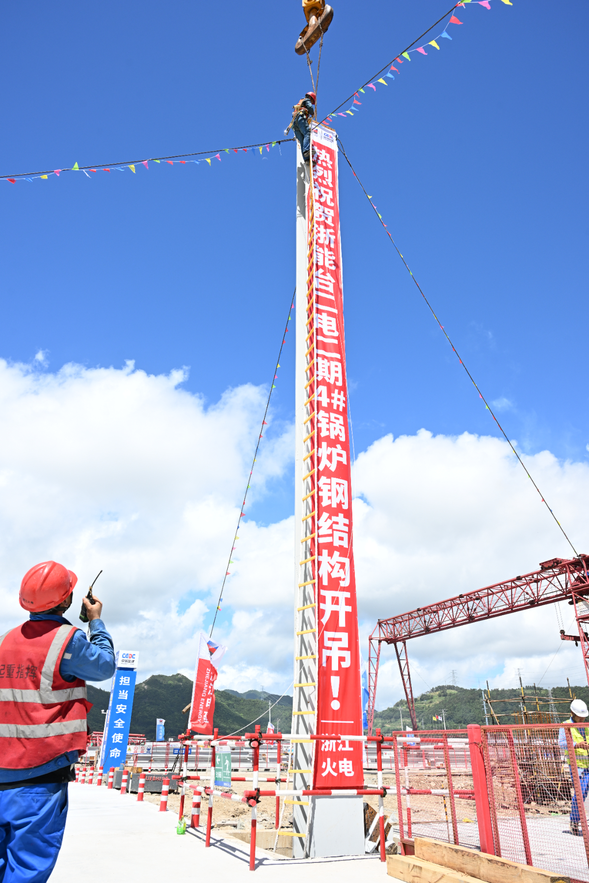 高質(zhì)量發(fā)展看“浙”里 | 臺二電二期4號鍋爐首根鋼結(jié)構(gòu)開吊