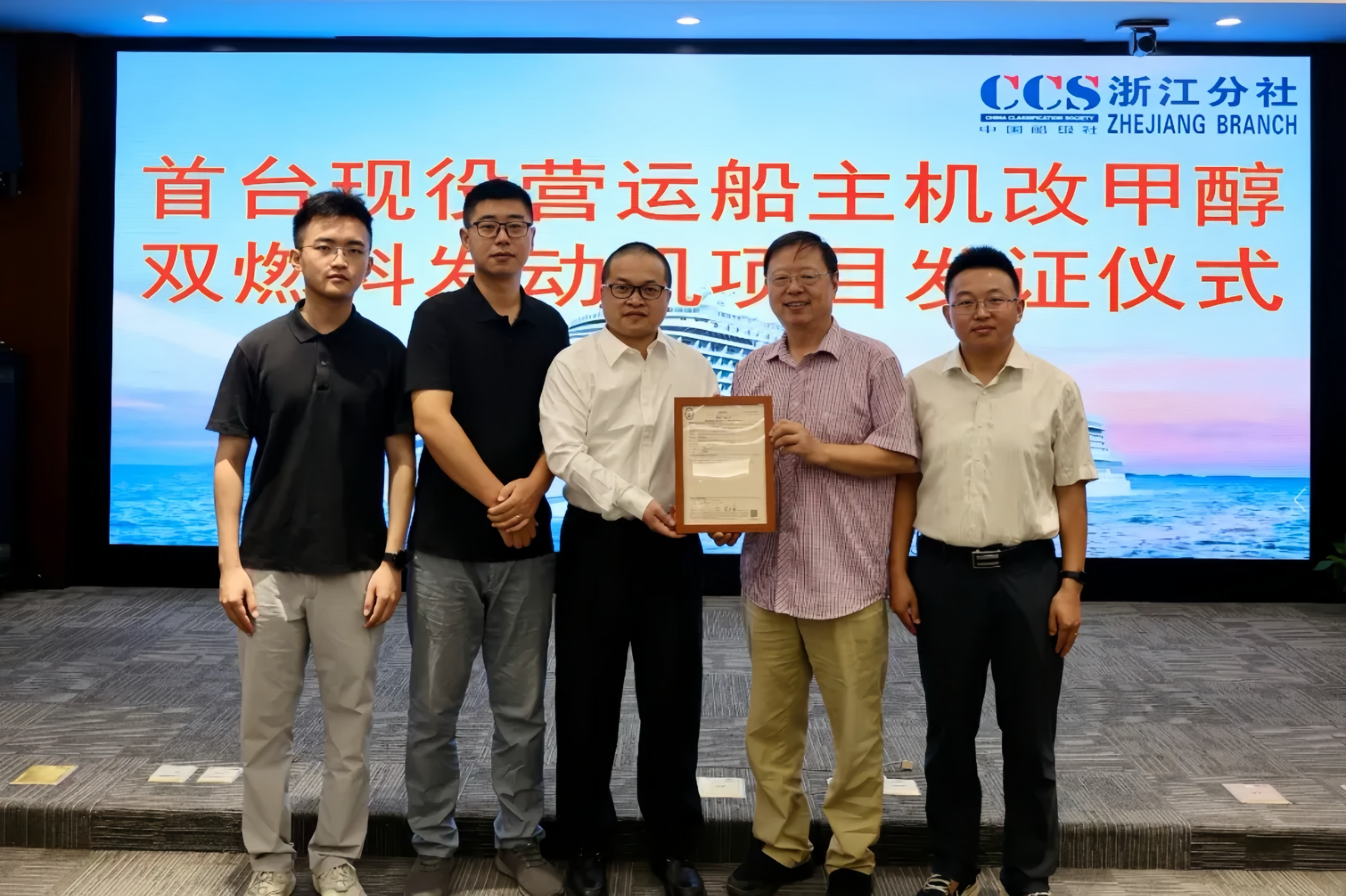 本網(wǎng)訊 “雙碳”戰(zhàn)略目標(biāo)下,航運(yùn)行業(yè)的綠色低碳轉(zhuǎn)型是大勢(shì)所趨。8月19日,從中國(guó)船級(jí)社(CCS)傳來(lái)喜訊,浙能邁領(lǐng)“領(lǐng)先1”輪主機(jī)獲頒首臺(tái)現(xiàn)役營(yíng)運(yùn)船主機(jī)改裝為甲醇雙燃料發(fā)動(dòng)機(jī)項(xiàng)目證書(shū),這也是繼今年7月浙能自主研發(fā)“油改電”內(nèi)河貨船試航成功后,在綠色航運(yùn)領(lǐng)域取得的又一重大突破。