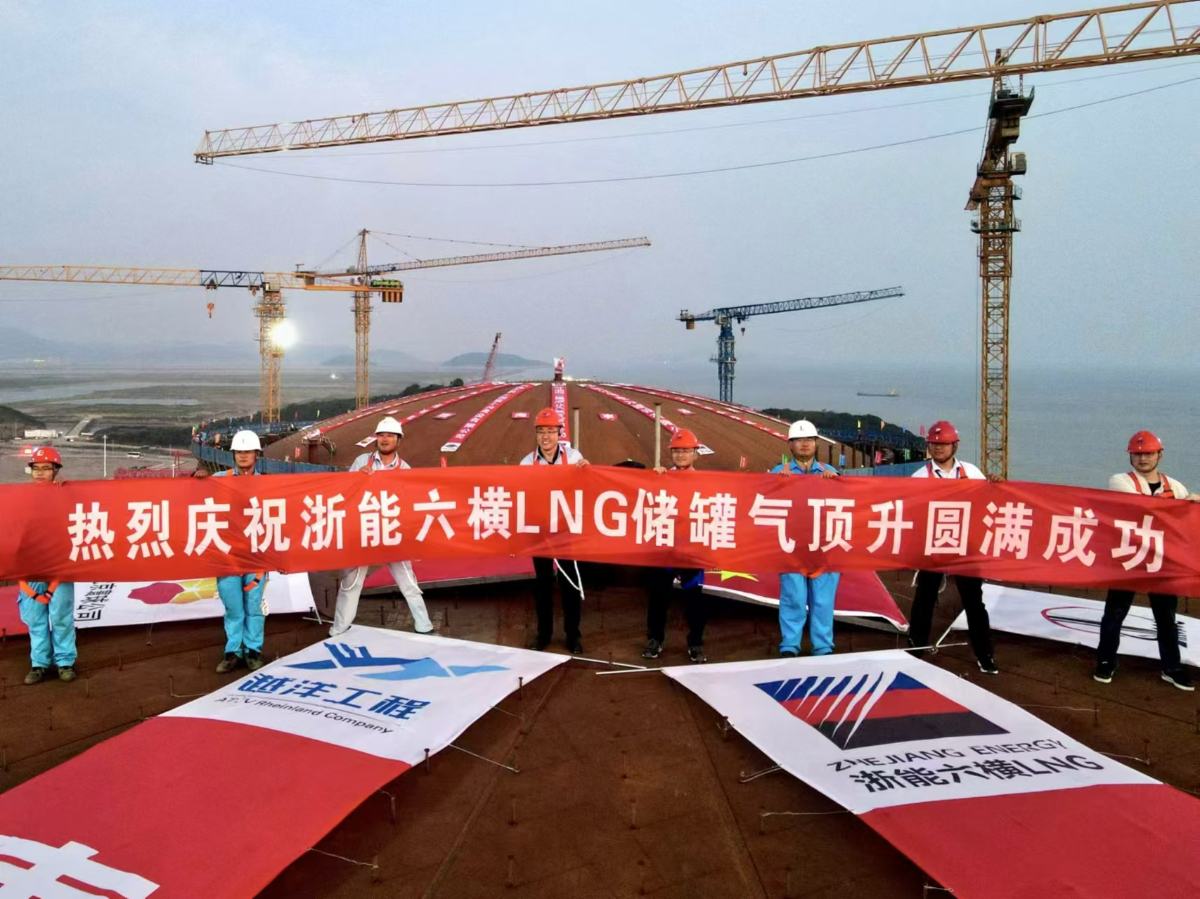 雙頂同升!浙能六橫LNG項(xiàng)目2、3號(hào)儲(chǔ)罐完成氣頂升