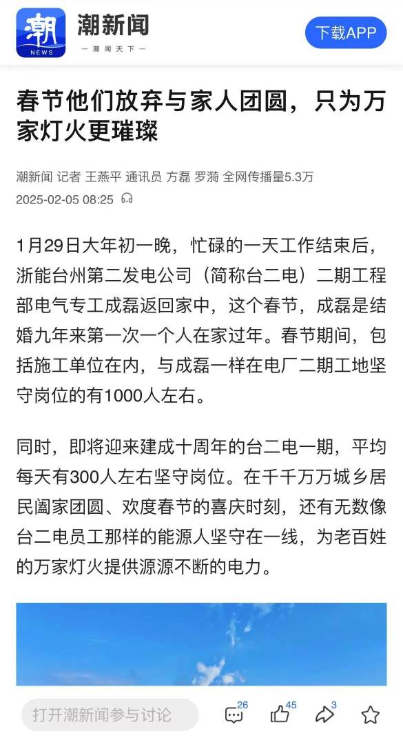編者按:春節(jié),是闔家團(tuán)圓的日子,是歡聲笑語的時(shí)刻。然而,在這萬家燈火的背后,有一群浙能人,他們放棄了與家人團(tuán)聚的溫馨,選擇堅(jiān)守崗位,用責(zé)任和擔(dān)當(dāng)守護(hù)著節(jié)日的溫暖與光明。2月5日,《錢江晚報(bào)》整版報(bào)道浙能臺二電春節(jié)期間上千人奮戰(zhàn)在工地一線。