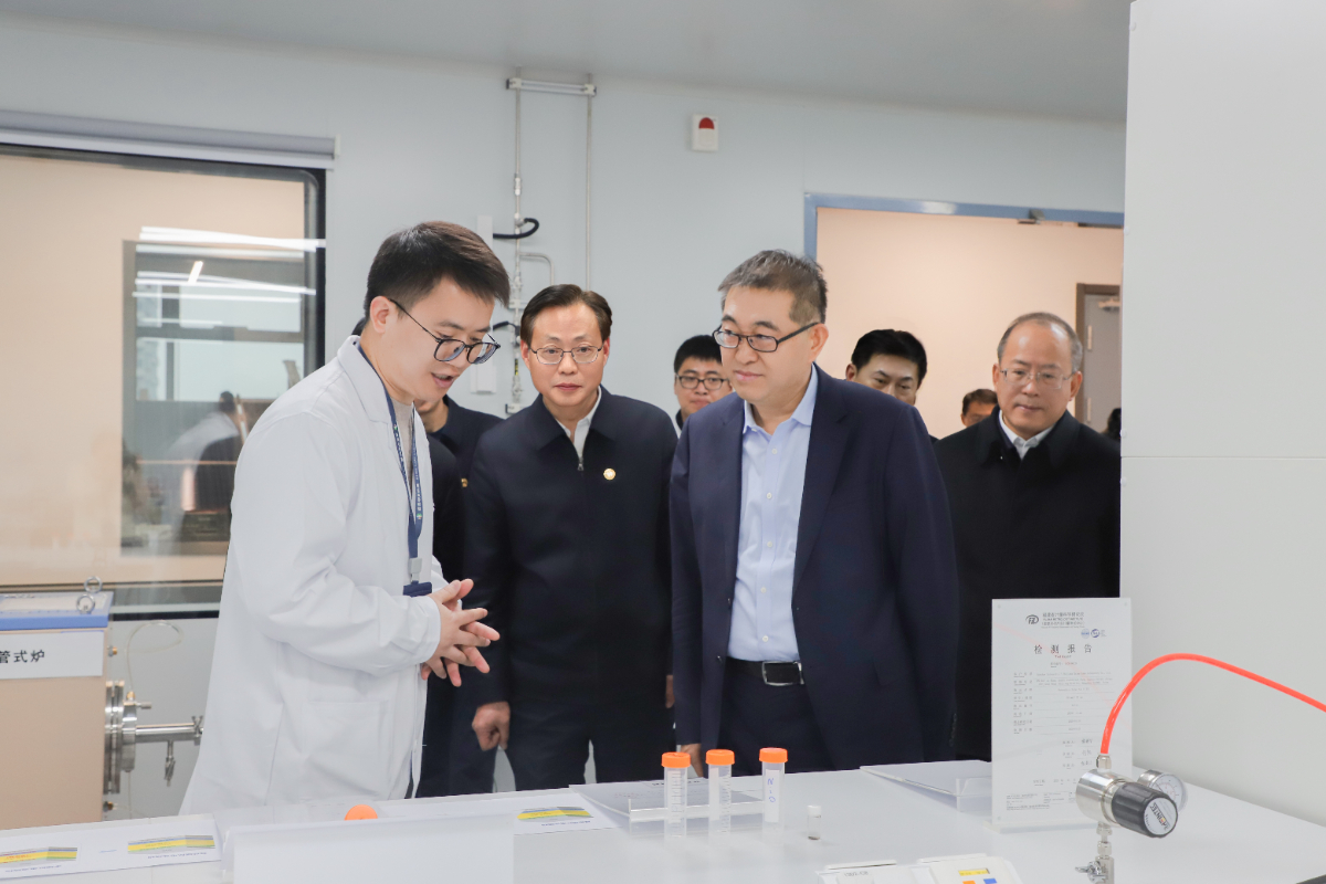 張雁云一行還參觀了白馬湖實(shí)驗(yàn)室展廳與固態(tài)電池實(shí)驗(yàn)室、鈣鈦礦太陽(yáng)能電池實(shí)驗(yàn)室。