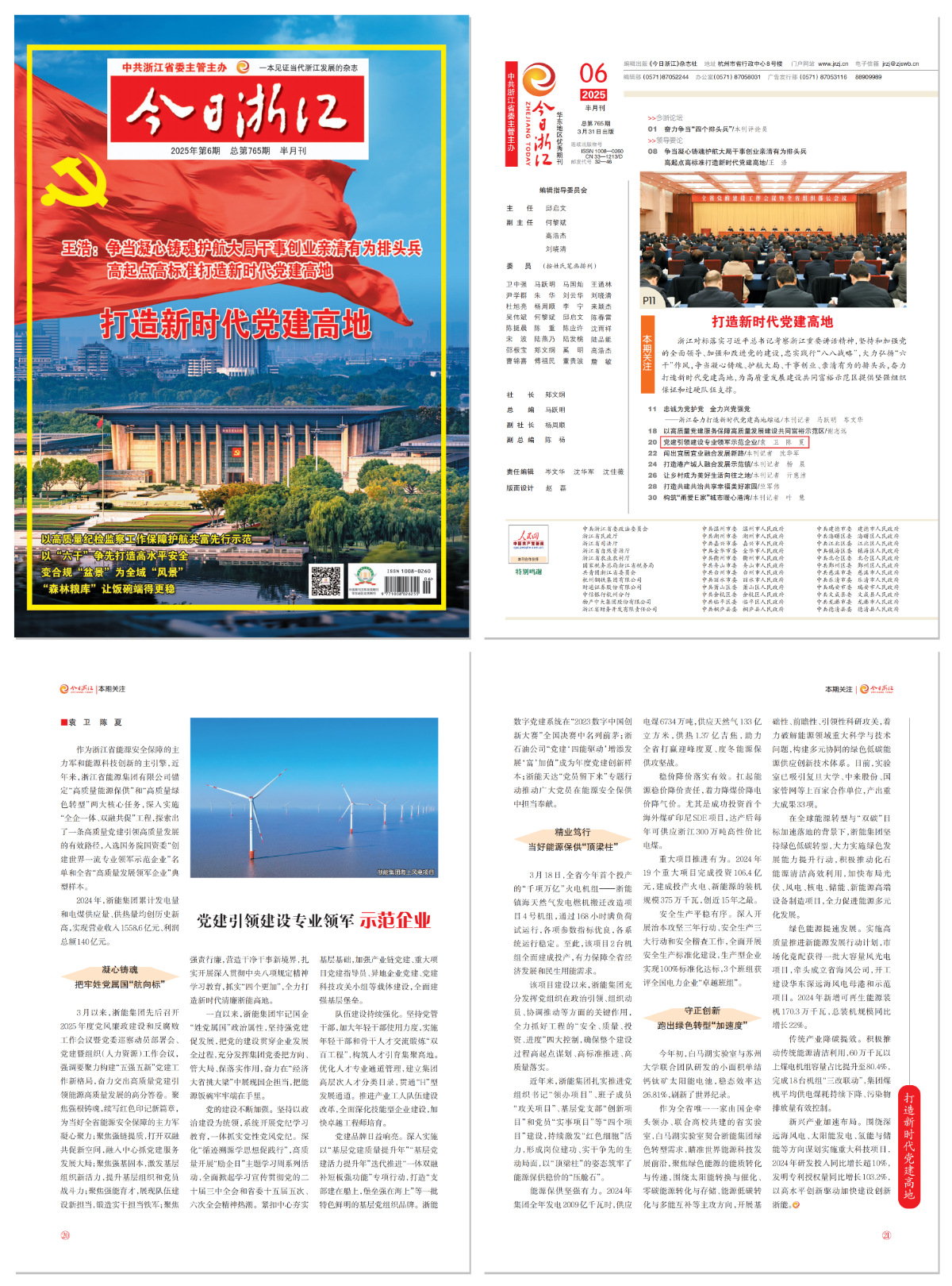 由中共浙江省委主管主辦的《今日浙江》2025年第6期刊登《黨建引領建設專業領軍示范企業》一文,聚焦浙能集團打造新時代黨建高地。