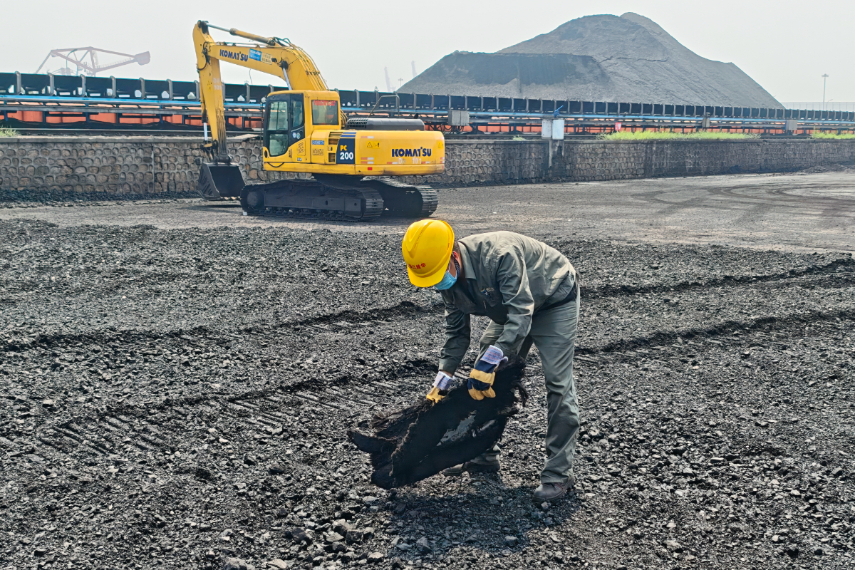 浙江越華長電駐廠員工皮帶巡檢查看煤質情況。 方祺森 攝