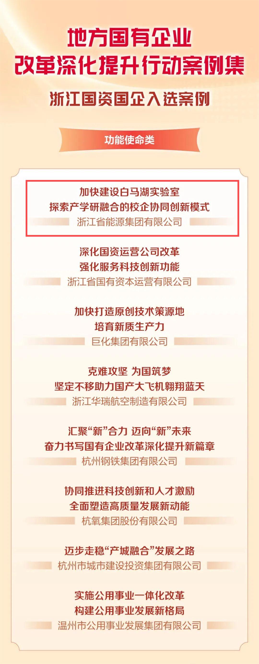 國務(wù)院國資委《地方國有企業(yè)改革深化提升行動案例集》浙江國資國企入選案例。 白馬湖實(shí)驗(yàn)室 提供