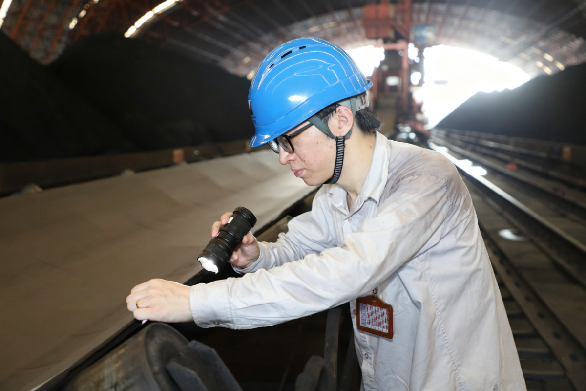 岑一洋每日深入現(xiàn)場,以“時(shí)時(shí)放心不下”的態(tài)度緊盯關(guān)鍵環(huán)節(jié)。煤場內(nèi)悶熱不通風(fēng),在里面待上半小時(shí),人就像從水里撈出來一樣。在輸煤棧橋,岑一洋俯身仔細(xì)檢查16A皮帶邊緣的磨損情況。這條皮帶作為上煤“主動(dòng)脈”,在迎峰度夏期間幾乎不停歇運(yùn)轉(zhuǎn),承擔(dān)取煤入倉和提升庫存的雙重任務(wù)。在難得的皮帶停運(yùn)間隙,他通過眼看、手摸等方式,不放過任何一處磨損隱患,確保這條“能源生命線”暢通無阻。