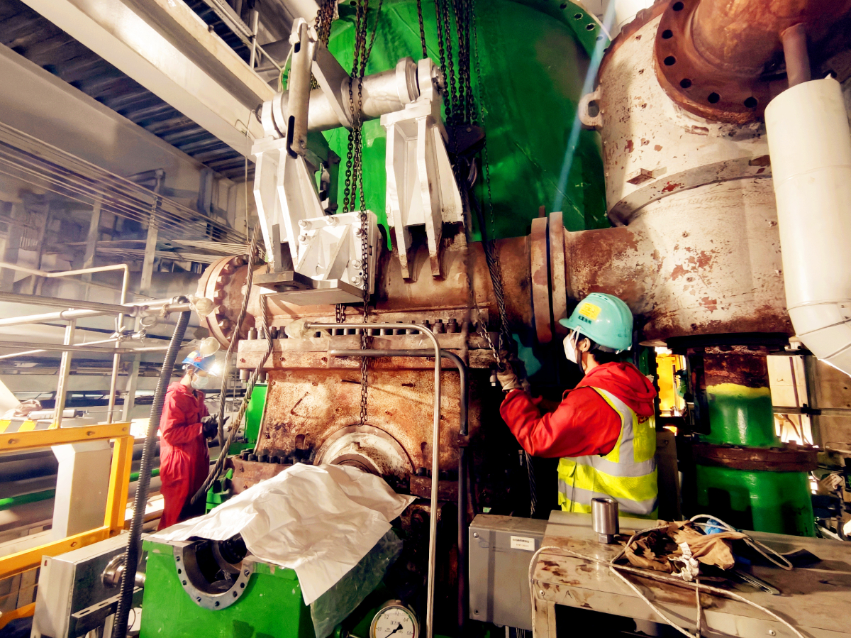 浙能電力工程在承接的浙能溫電7號發電機組汽機檢修中引進新工藝高效解體本體螺栓。 陳涵雨 攝