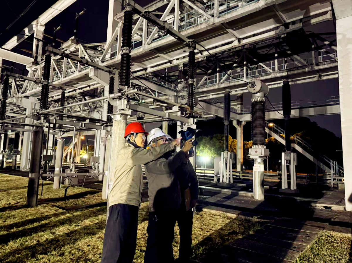 浙能電力工程檢測人員利用夜間低溫時段開展絕緣子紅外檢測。 王洋 提供