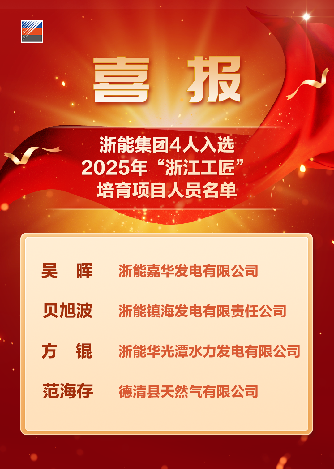 2025年“浙江工匠”培育名單名單出爐!浙能集團4人入選
