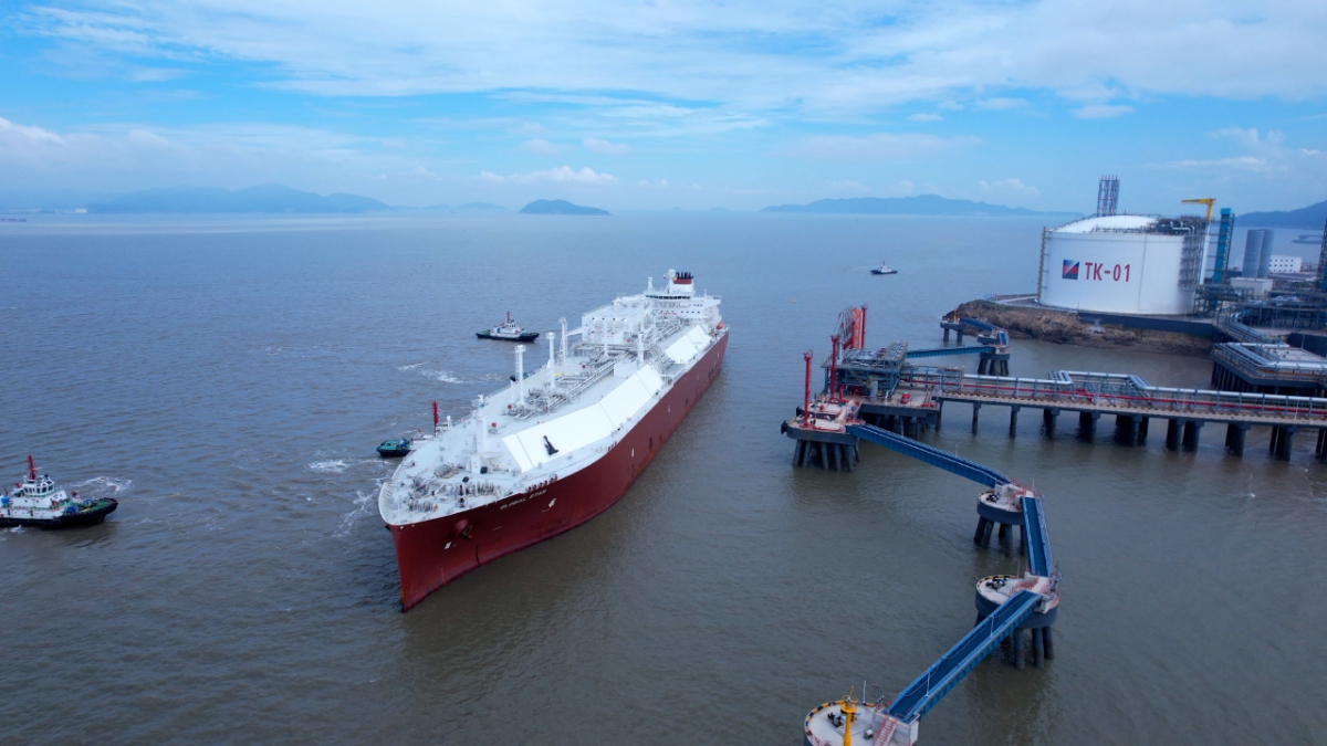 溫州LNG公司強化黨組織戰斗堡壘作用,全年高效接卸LNG船舶。 謝晨瀅 攝