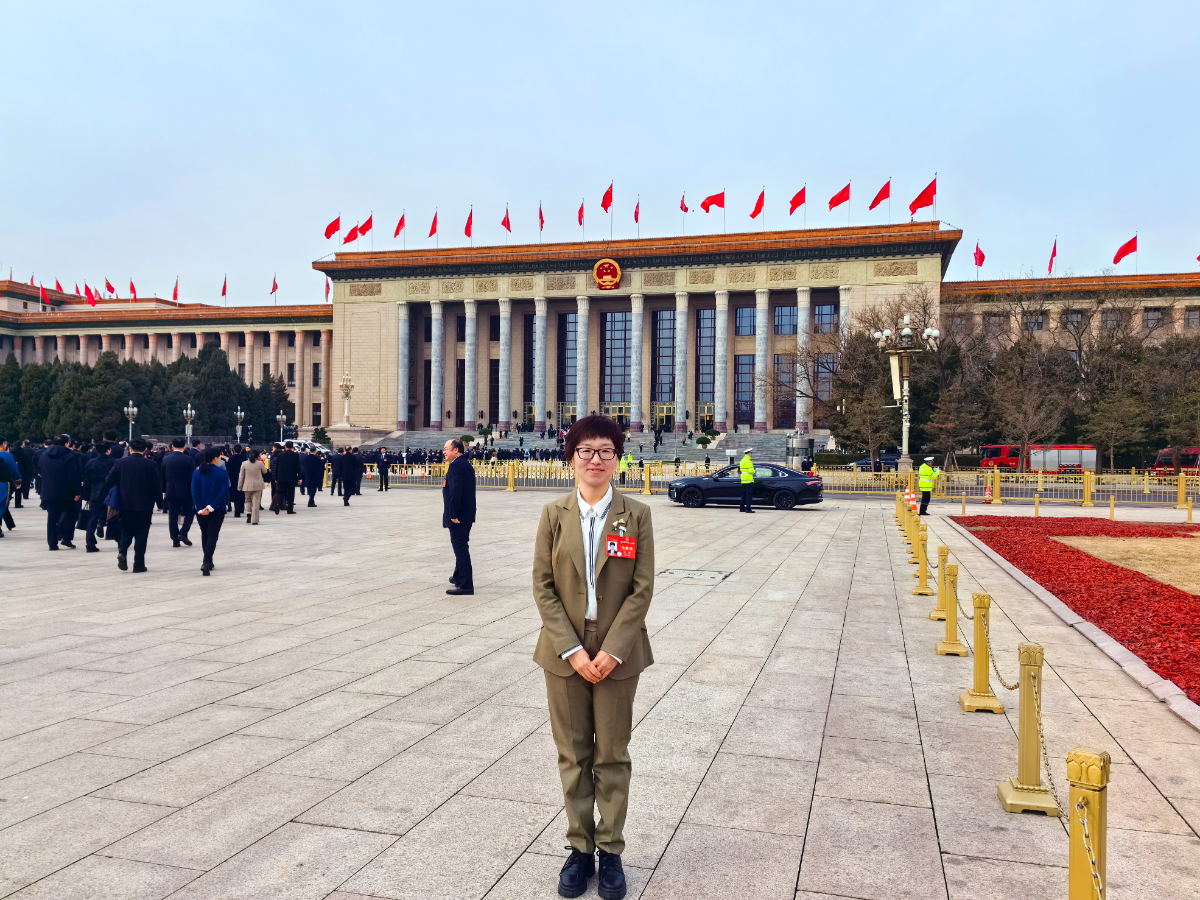 王潔代表在北京人民大會堂前。 王潔 提供