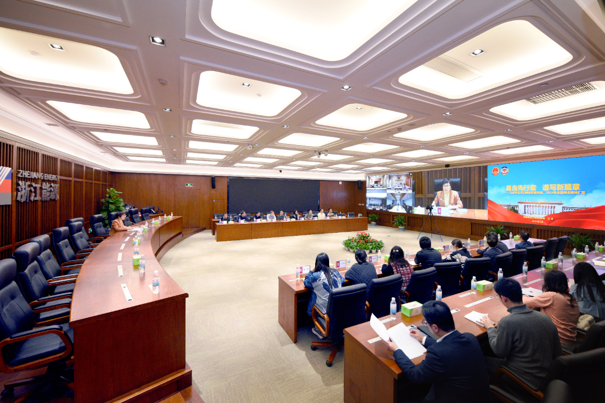 會上,王潔從參會感受、履職情況、學習體會和下步工作打算四個方面作分享。她以習近平總書記提出的兩會“金句”為主線,結合能源產業發展與科技創新,著重分享了習近平總書記在全國兩會期間重要講話精神的學習體會。此外,王潔還從一名科技工作者的角度出發,介紹了其在全國兩會期間提出的“關于支持浙江省建設海陸協同的新型能源體系先行示范的建議”和“關于支持國有企業領建的新型研發機構納入國家實驗室體系的建議”。
